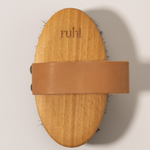 The ruhi Ionic Dry Brush is made of oiled, regional beech wood from responsibly managed forests and features ultra-fine copper wire and ethically sourced natural bristles. The strap is made of premium leather. The brush is sustainably and traditionally crafted in Germany.