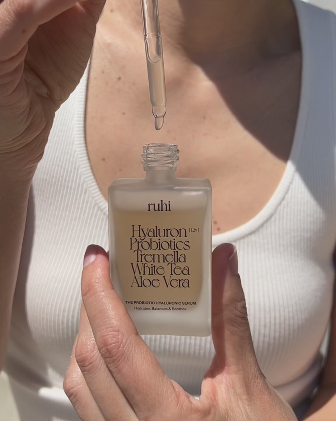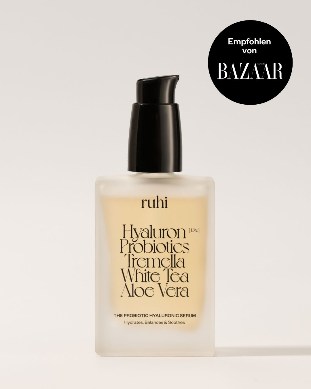 "Another product that is never missing from my skincare routine is a hyaluronic acid serum because I find that adding more moisture is good for my skin at any time of year. But I thought: why should a hyaluronic acid serum only have one ability and make time-consuming product layering necessary? With ruhi’s Probiotic Hyaluronic Acid Serum, I wanted to create a holistic, innovative moisturising serum that ticks all the boxes. In addition to its exceptional moisturising abilities (thanks to four types of hyaluronic acid), it protects the skin from harmful environmental influences, stabilises the microbiome, prevents inflammation and boosts cell regeneration.