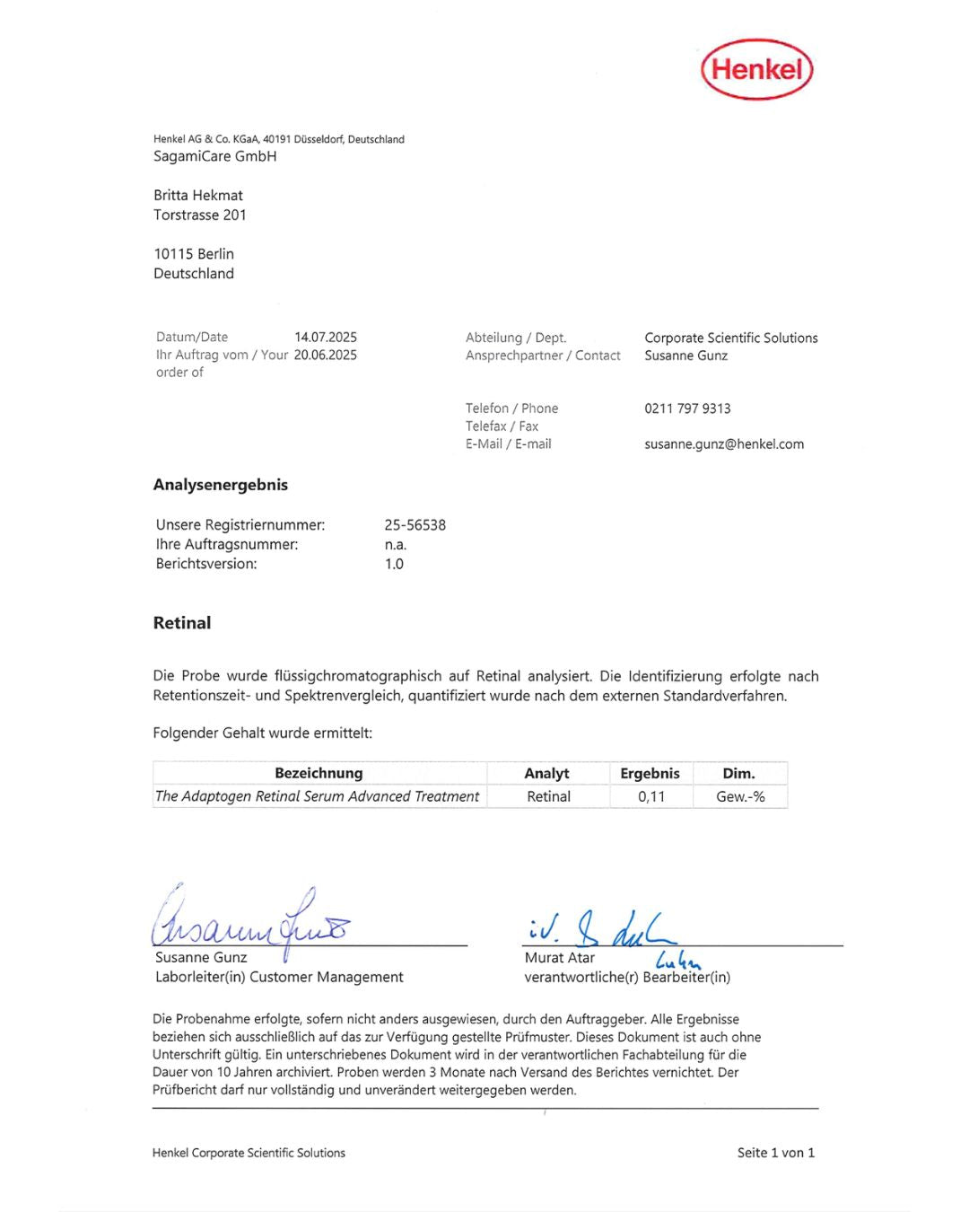 Ist das Adaptogen Retinal Serum laborgeprüft?